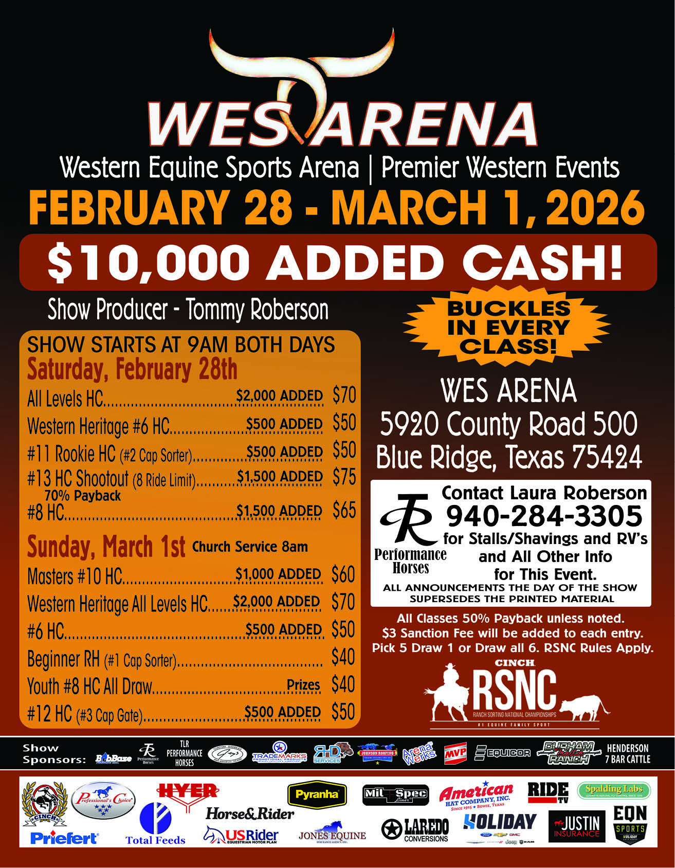 San Antonio Stock Show & Rodeo 3201 East Houston Street, San Antonio, TX, United StatesBook your stalls at sarodeo.com/horse. Stalls open on Monday January 12th, 2026, at 8:00 AM MST. Outside shavings are allowed. Move in on Sunday February 22nd at 2:00pm out on […]