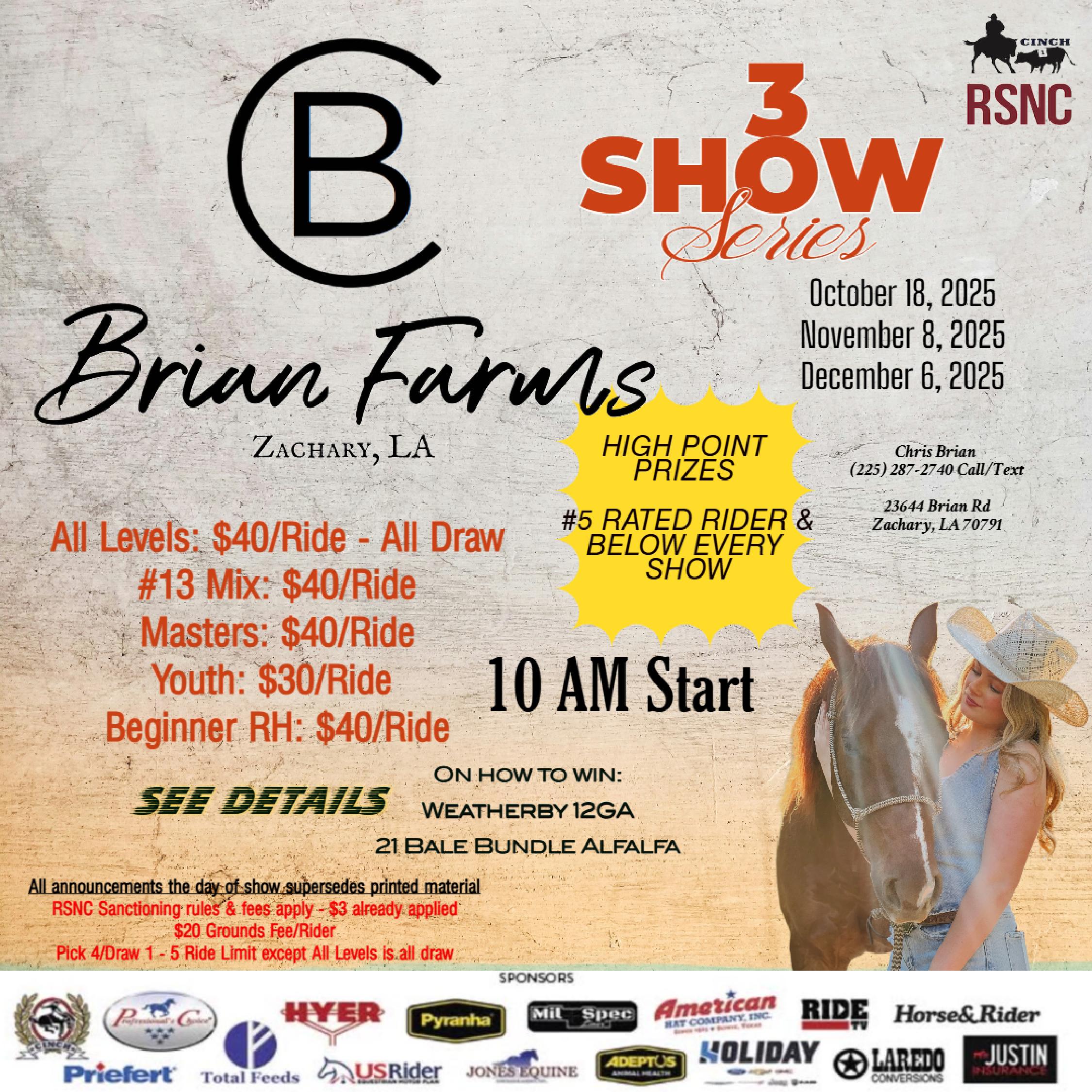 CB Farms – Zachary, LA February 14, 2025 CB Farms 23494 Brian Rd, Zachary, LA, United States MOVED TO FRIDAY 2/24/25 AT 7PM!!!