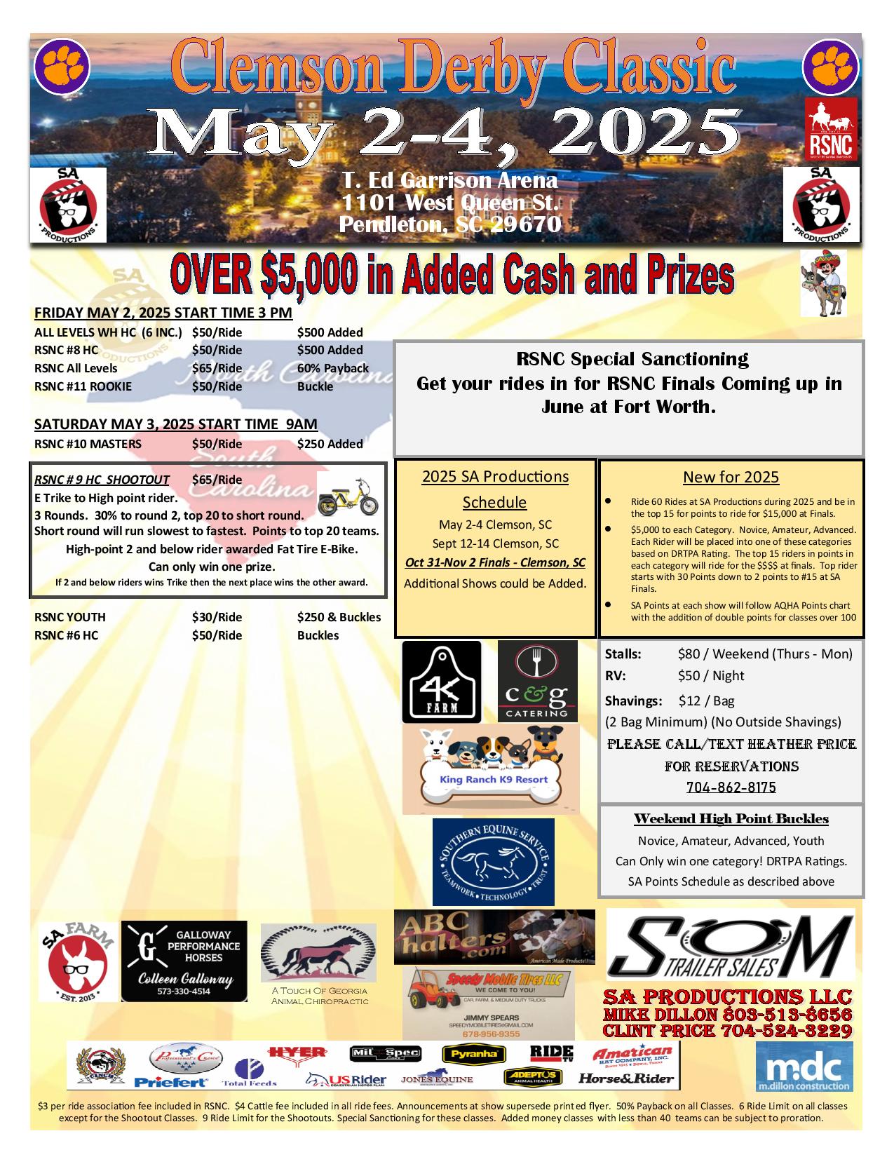 T Ed Garrison Arena – Pendleton, SC May 2, 2025 - May 3, 2025 T Ed Garrison Arena 1101 West Queen Street, Pendleton, SC, United States