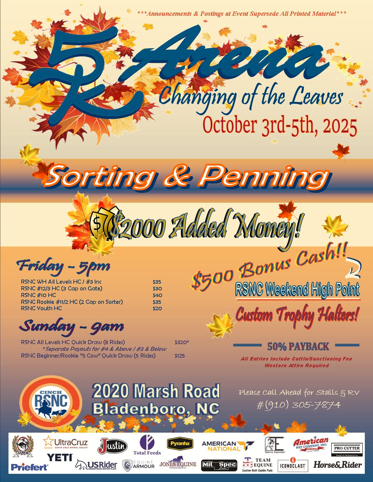 5K Arena – Bladenboro, NC October 3, 2025 - October 5, 2025 5K Arena 2020 Marsh Road, Bladenboro, NC, United States