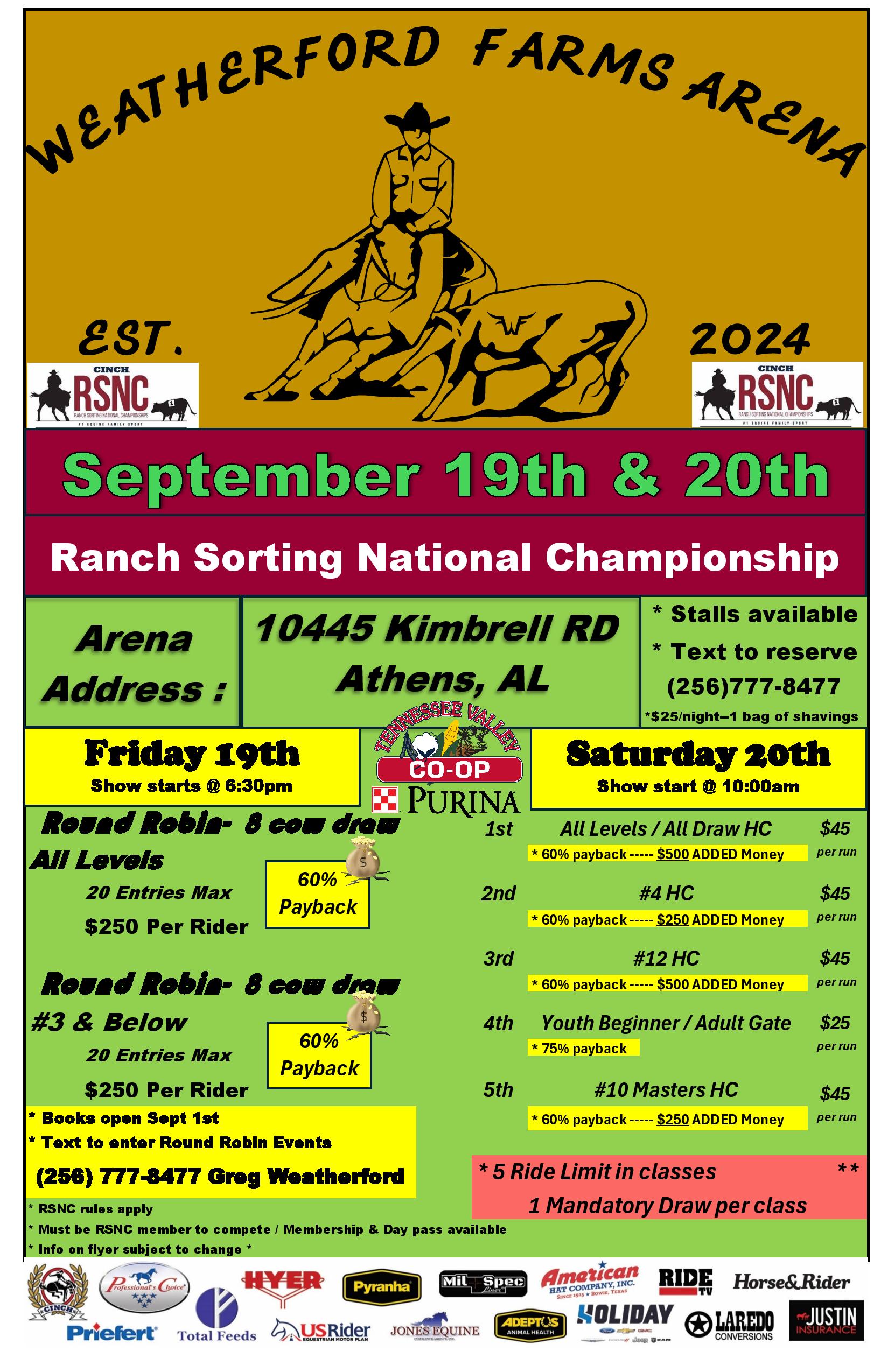 Athens, AL – 2025 Alabama State Finals January 10 - January 11 Weatherford Farms 10445 Kimbrell Rd, Athens, AL, United States