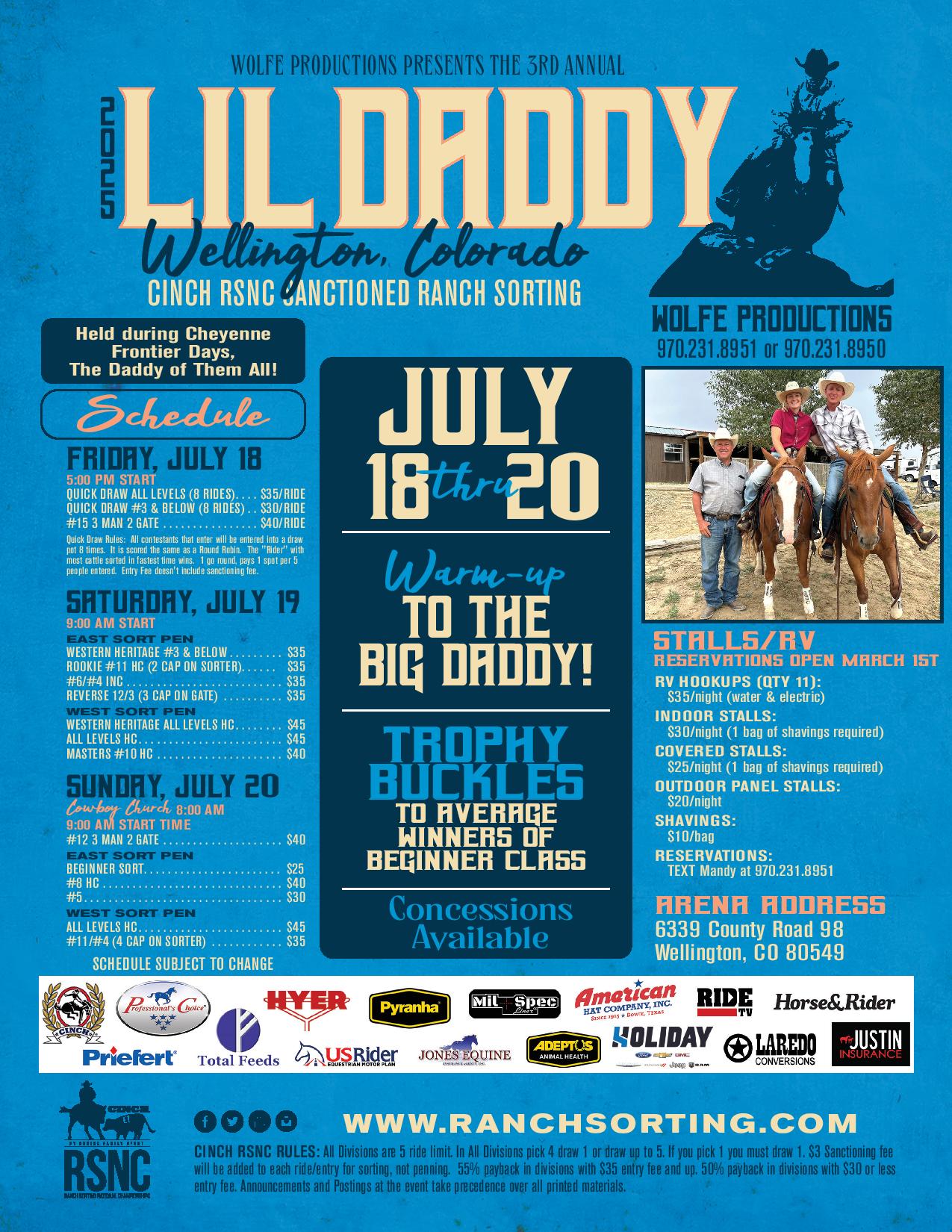 Lil’ Daddy – Wellington, CO July 18, 2025 - July 20, 2025 Wolfe Arena 6339 WCR 98, Wellington, CO, United States