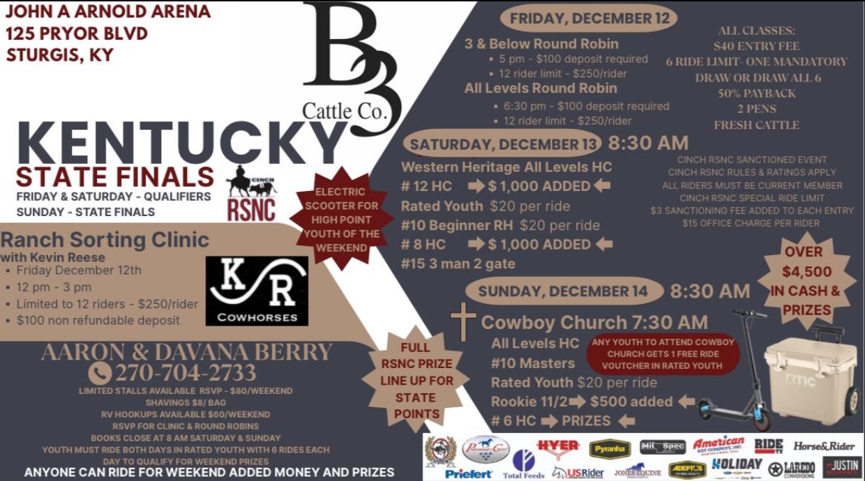 December 12 - December 14 KY State Finals – John Arnold Arena – Sturgis, KY John A Arnold Arena 125 Pryor Blvd, Sturgis, KY, United States